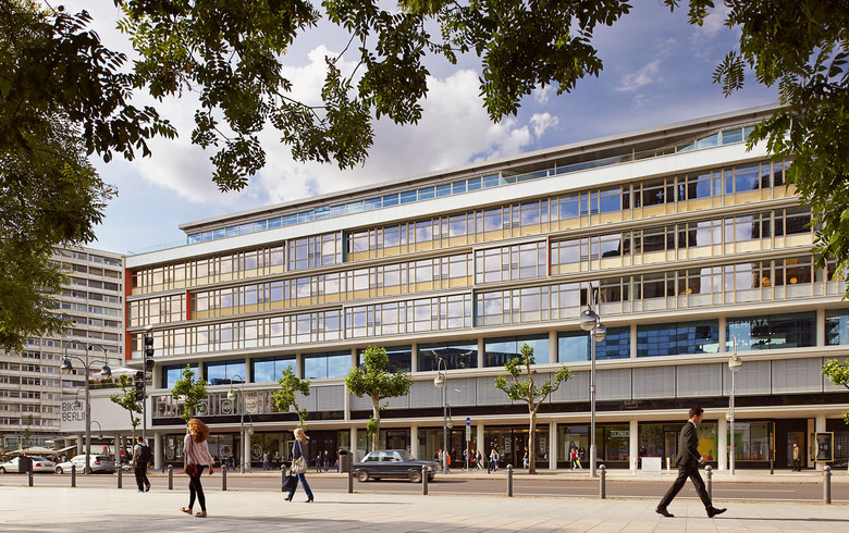 Insgesamt galt der Rekonstruktion der Originalfassaden akribische Sorgfalt: Eine lebhafte Optik ist für das „Bikinihaus“ charakteristisch, das nach der Sanierung Raum für Gastronomie, Handel und Büros bietet. Durch Vor- und Rücksprünge im Stahlbeton und mit variantenreichen Bändern aus filigranen Fenstern und Glasbrüstungen erweckt seine Fassade einen leichten, ja gewebeartigen Eindruck. Die für die 1950er typische zarte Eleganz der Profile und die Original-Farbigkeit in die neue Konstruktion zu übernehmen, war angesichts der heutigen Energieeinsparverordnungen keine unkomplizierte Aufgabe. Allergrößte Sorgfalt wurde auch für die Wiederherstellung der Südfassade des „Kleinen Hochhauses“ aufgewendet, eines ehemaligen Bürogebäudes, das inzwischen ein Design-Hotel beherbergt. Die Suche nach angemessenen Putzsystemen für die Sichtbetonoberflächen an den Schmalseiten, deren lebhafter und von Handarbeit geprägter Charakter nicht verloren gehen sollte, erforderte viel Ausdauer.