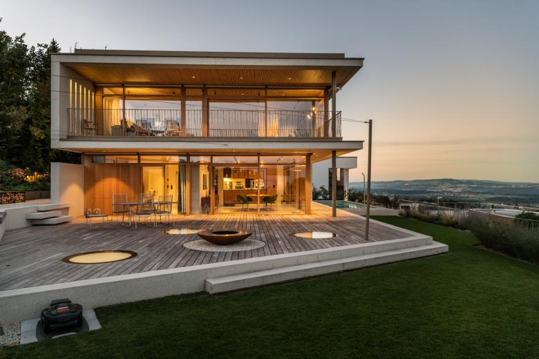 Die Schweiz ist nicht Kalifornien, Wellplatten aus Bitumen oder Kunststoff sind nicht gerade State-of-the-Art. Faserzement oder Beton wirken optisch edler und sind bedeutend stabiler: Materialien für Schweizer Ansprüche und Klima. Mithilfe von Schalungseinlagen, sogenannten Strukturmatrizen, nimmt die Sichtbetonfassade alle denkbaren Formen und Strukturen an.