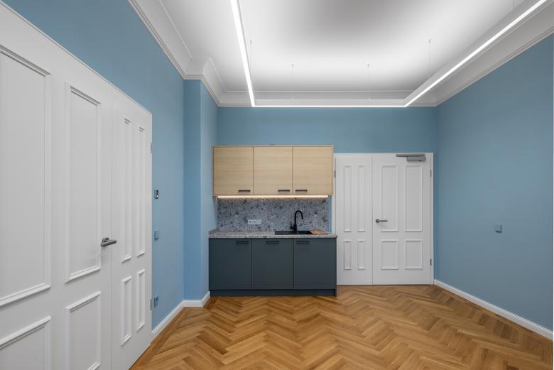 Die fein abgestuften Farbnuancen von Wänden und Ausstattung bilden ein harmonisches Spektrum, das den Räumen Tiefe und Lebendigkeit verleiht. Sie greifen die architektonische Vielfalt des historischen Bestands auf und schaffen einen sensiblen Dialog zwischen Alt und Neu. Die matten, farblackierten Oberflächen der JUNG Schalter und Taster fügen sich selbstverständlich in das Gesamtbild ein. Mal verschmelzen sie mit der Wandfarbe, mal setzen sie bewusste Akzente, die dem Raum Rhythmus und Struktur verleihen. Gleichzeitig sorgt die moderne und smarte Elektroinstallation auf Basis von KNX-Technologie für Komfort und Effizienz. Beleuchtung, Verschattung und weitere Funktionen lassen sich flexibel steuern und an die unterschiedlichen Nutzungen des Hauses anpassen.