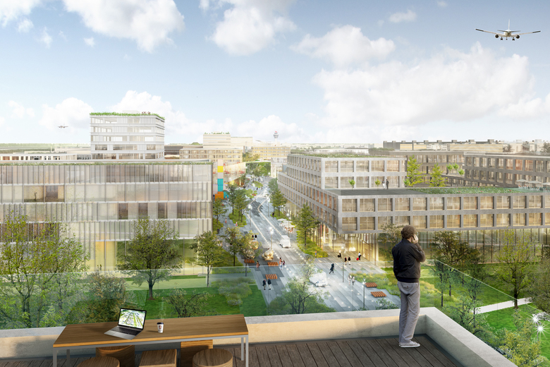 The LabCampus Airsite West aims to be an attractive working environment that is diverse, flexible and always in transformation. The proto-urban character is expressed in the skilful integration of urban qualities in a commercial working environment. As in an urban environment, high-end, experimental and temporary buildings and uses can co-exist. The LabCampus will be a cross-company and cross-sector innovation centre on the airport campus.