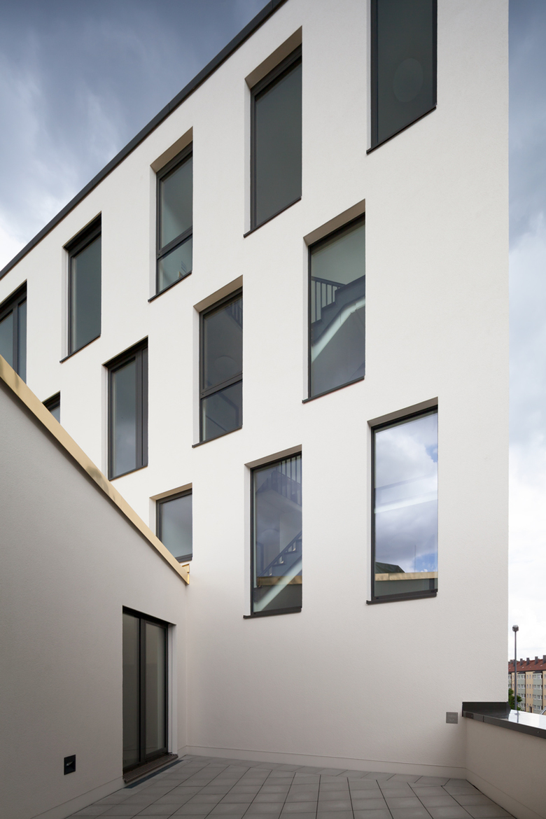 Nach dem 1. Preis im Wettbewerb 2010, den kister scheithauer gross zusammen mit realgrün Landschaftsarchitekten gewonnen hatten, wurde nun das Geschäftshaus in der Tegernseer Landstraße 64 fertig gestellt. Dieses steht an der Schnittstelle zwischen der kleinteiligen, pittoresken Bebauung der Feldmüllersiedlung und dem urbanen Bereich am Tegernseer Platz.