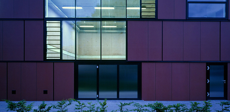Wichtigste gestalterische Merkmale der drei Neubauten sind ihre kubische Form und die akzentuiert gestalteten Fassaden. Die kubische Wirkung der Gebäude wird durch die bündige Außenhaut unterstützt. Vorgehängte Fassadenplatten aus grünem Waschbeton sind in einem spannenden Wechselspiel mit flächenbündigen Gläsern angeordnet, so dass die Neubauten unerwartete Ein- und Ausblicke sowie vielfältige Belichtungssituationen gewähren.