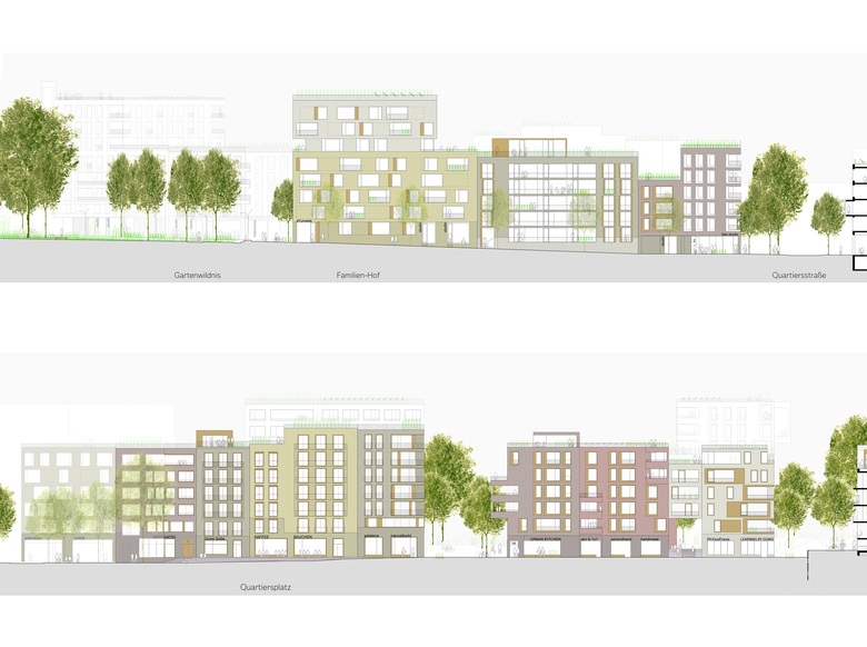Die Bebauung des Quartiers definiert einen klaren Siedlungsabschluss mit hohem Wiedererkennungswert. Sechs nahezu gleichwertige Höfe spannen ein belebtes urbanes Band zwischen der Friedberger Landstraße und dem Günthersburgpark. Die GüntherbugHÖFE grenzen im Norden mit einer Promenade an die GartenWILDNIS, im Süden an die zentrale Quartiersstraße und nach Ost und West jeweils an ruhige Wohnstraßen. Sie vereinen Naturnähe und gemeinschaftlich-urbanes Leben und überführen die spezifischen Qualitäten des Nordends mit seiner typischen Kleinteiligkeit und Dichte in eine zeitgemäße kompakte Blockrandbebauung. Jede einzelne Gebäude-Orientierung rund um die privat und gemeinschaftlich genutzten grünen Innenhöfe bietet spezielle, jedoch gleichbleibend hochwertige Wohnqualitäten. Dies fördert die starke Durchmischung verschiedener Wohnangebote und der sozialen und demografischen Strukturen.
