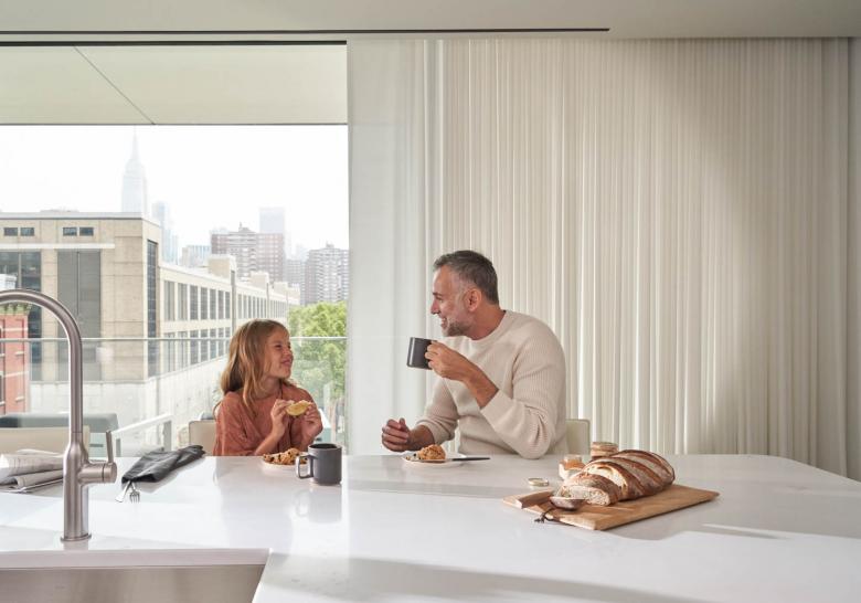 Die lichtdurchfluteten Küchen sind bestückt mit der KWC SIN Küchenarmatur und inspiriert mit Feinsinn.