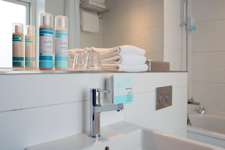 Ausgestattet mit der Armatur KWC AVA, heisst das Hotel alle Gäste aus aller Welt willkommen. KWC AVA kombiniert Ihre feinsinnige Stilkompetenz mit Ihrem Anspruch an verlässliche Schweizer Qualität und modernste Technik.