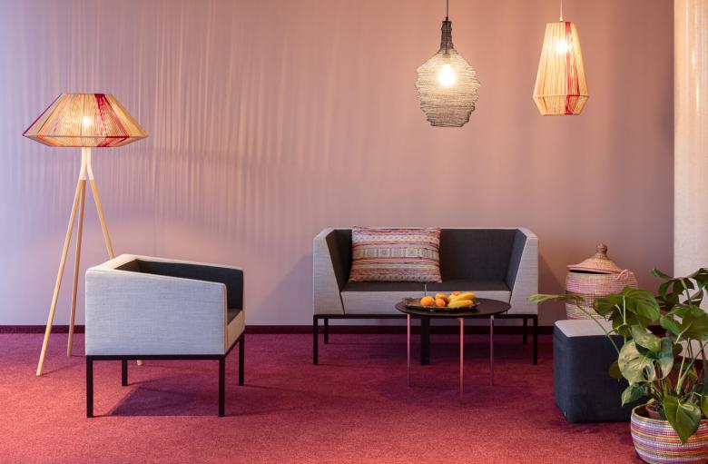 Die Innenarchitektur folgt dem hohen Nachhaltigkeitsstandard des GIZ Campus mit authentischen, schnell nachwachsenden Materialien und gibt internationalen Begegnungen Atmosphäre, Raum und Bühne.