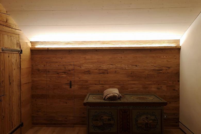 Das Appenzellerhaus ist seit vielen Generationen in Familienbesitz. Mit dem Umbau des Holzhauses, das nach traditioneller Strickbauweise gefertigt wurde, soll der historische Bestand um einen modernen Anbau erweitert werden. Den Bauherren war es sehr wichtig, dass die historischen Elemente der Strickholzwände weitgehend erhalten und in den Umbau integriert werden. Die Geschichte des Hauses soll mit den historischen Bestandteilen erhalten bleiben und für die nächsten Generationen weiterleben. Die Verbindung von Tradition und Moderne war auch die Basis für das Beleuchtungskonzept. Alle Leuchten, die der Grundbeleuchtung dienen, sind optimal in die Holzstruktur der Strickwände integriert. Die Anordnung der Leuchten wurde sorgfältig gewählt, damit die Holzstruktur der Strickwände mit der besonderen Patina der vergangenen Jahre, zur Geltung kommt. Der ehemalige Stall wurde durch einen Neubau ersetzt und beherbergt heute einen grosszügigen Wohn- und Essbereich mit Panoramablick auf die Appenzeller Berge. Das ursprüngliche Wohnhaus beherbergt jetzt mehrere Schlafzimmer und ein Arbeitszimmer. Die Treppe ist das Verbindungselement der beiden Gebäudehälften. Es dient als Eingangs- und Zugangsbereich zu allen Ebenen des Hauses. Es zeichnet sich auch durch seine besondere Deckenhöhe aus, die mit dekorativen Pendelleuchten von George Nelson besetzt ist. Die durchschnittliche Raumhöhe in Appenzeller Häusern liegt bei ca. 1.8 Meter. Indirektes Licht optimiert daher das Erscheinungsbild und die Atmosphäre der Räume.