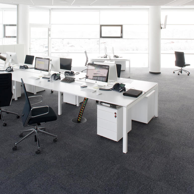 Die planerische Herausforderung: räumliche und akustische Trennung von Bereichen trotz Aufrechterhaltung der wichtigen Sichtbezüge. Durch den Einsatz akustisch wirksamer Materialien für die Büromöbel und die Trennwände, durch eine Höhenstaffelung der Möbel und durch eine spezifische Anordnung der Arbeitsplätze wurde der Großraum zoniert. Die optisch sehr hell und neutral gehaltenen Räume schaffen Ruhe und wirken somit dem hektischen Treiben in der Redaktion entgegen. Und so läuft die Sendung das ganze Jahr über, täglich um 17.30 Uhr.