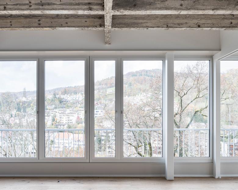 Die heissen Quellen am Limmatknie gaben Baden seinen Namen. Aus dem Ortskern führt die nach den Erbauern benannte Römerstrasse ins Industriegebiet. Hier wurde 1891 die Brown, Boveri & Cie – die heutige ABB – gegründet. Eine Villa der Gründer und das weitläufige Industrieareal zeugen vom einstigen Glanz des Standortes. Etwas peripher, am bewaldeten Steilhang zur Limmat hin, stehen vier pavillonartige Erweiterungsbauten aus den 60er Jahren. Dank eines erfolgreichen Wettbewerbes 2010 konnte die filigrane Bürostruktur in 78 Eigentumswohnungen umgebaut und 2023 bezogen werden.