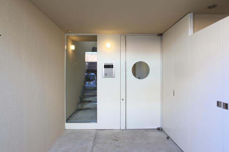 Passing through a clump of Japanese hackberry trees swaying in the breeze and entering the entrance, one arrives in a compact yet three-storey atrium space. The large opening on the north side and the east-facing opening at the top of the staircase not only create a sense of elevation but also draw calm, bright light and a refreshing breeze into the interior.