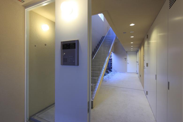 As one ascends the stairs on the way to the residential units, one casually encounters the surrounding landscape framed by the large openings and can sense the daily changes in light and weather.