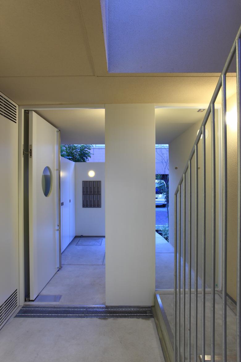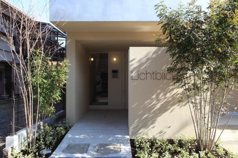 The ground-floor dwellings comprise two units where the wet areas are grouped on one side and the living spaces are kept as simple rectangular spaces as possible, and one unit that extends lengthwise from north to south. The south-facing opening overlooks a garden planted with bright-leaved groundcover that blooms with charming blue flowers in early spring.