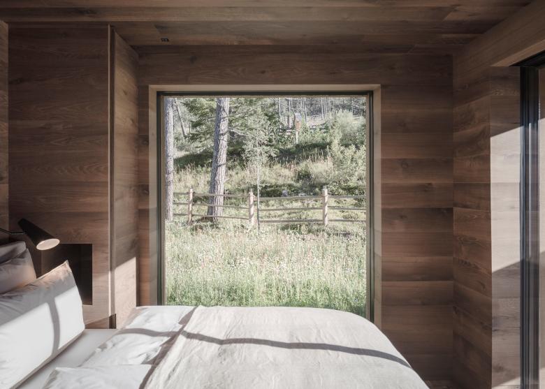 Adhering to the A Nature climate house standard, the new construction not only excels in energy efficiency but also champions sustainability by employing indigenous building materials. The concrete walls, enriched with an aggregate of white dolomite rock, received meticulous on-site treatment, imparting them with a unique surface texture. Both the façade's wooden cladding and the roof's shingles showcase the use of natural South Tyrolean larch wood. In the interiors, whose detailed design was also planned by Perathoner Architects, the wall panelling and floors made of local oak create a cosy ambience.