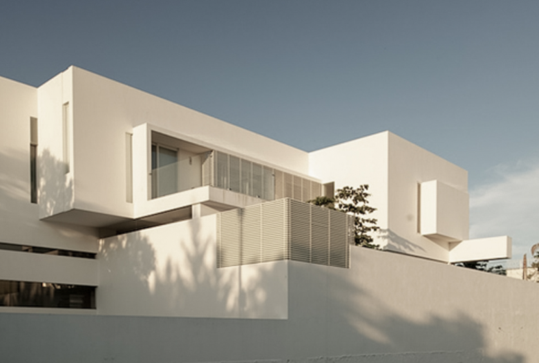 Más aún, el sentido del equilibrio es notorio a primera vista en la presencia de las fachadas por su “contraste de cantidad” que se logra por su composición volumétrica; el exterior ha sido articulado como un volumen sólido donde incisiones y protuberancias son sólo el reflejo de las necesidades programáticas del interior. La masa predomina sobre el vano sólo para hacer aparente que la inserción de la luz natural y la búsqueda de las vistas hacia los parajes naturales y los paisajes urbanos, tienen que ser aprovechados para obtener el máximo confort de sus habitantes.