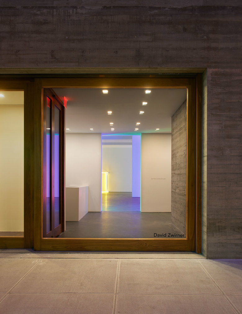 For David Zwirner’s second location in Chelsea, Selldorf Architects designed a 30,000 sf building that is the first LEED certified commercial gallery in the U.S. The neighborhood’s industrial-aesthetic is the inspiration for the exposed concrete façade. The concrete is contrasted by teak paneling at the street level and on the window frames above. Inside, the 5-story building is organized around the main exhibition space: a 5,000 sf column-free gallery with an 18’-6” ceiling. The space’s concrete floors and large sawtooth skylights recall the aesthetic that the firm developed for David Zwirner 19th Street.