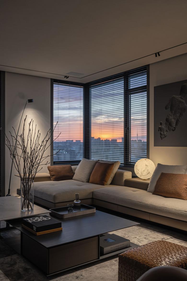 When you enter the apartment, a feeling of warmth and comfort is floating in the air due to the color palette, the abundance of natural light from the spacious windows, and the harmonious arrangement of furniture. Our team has executed this project in a warm nude palette without overloading the overall concept with bright accents.