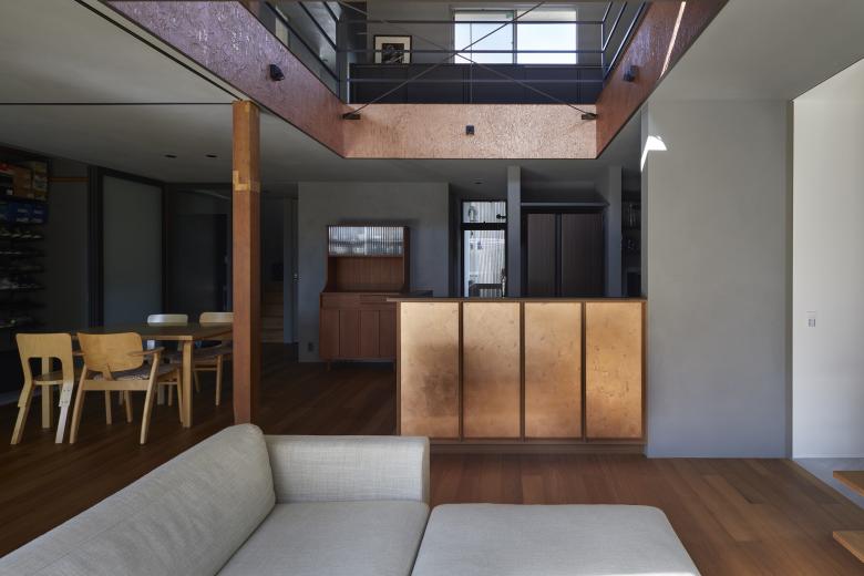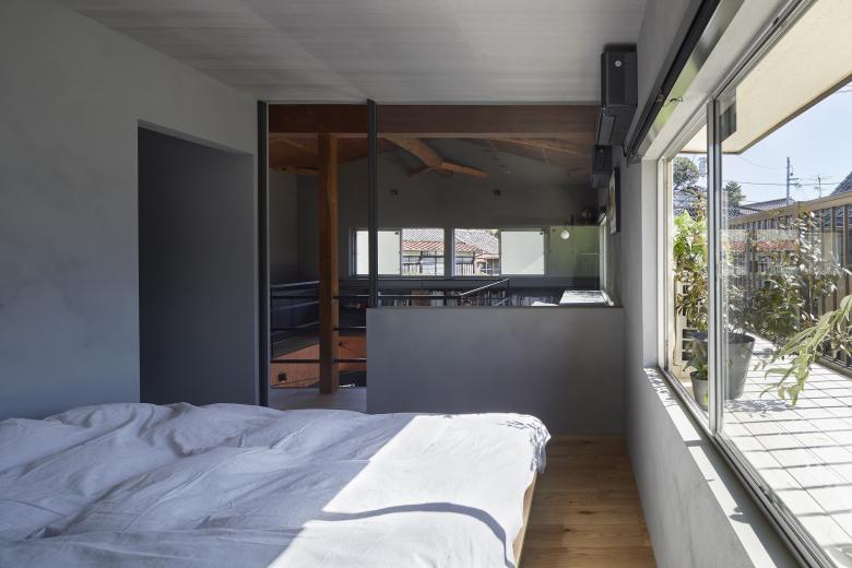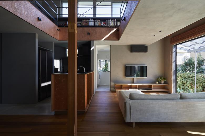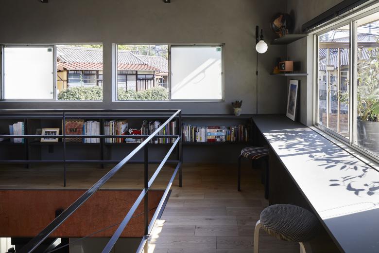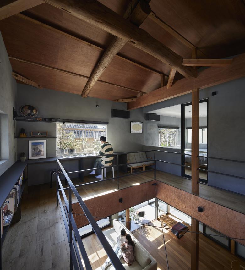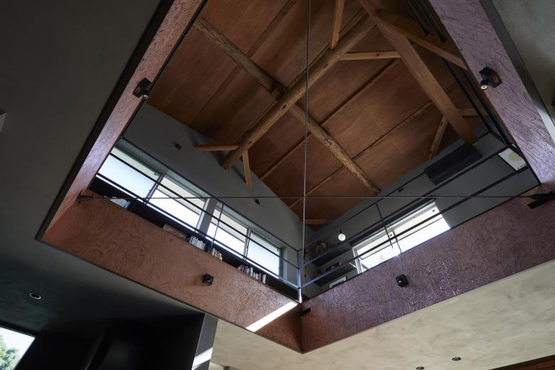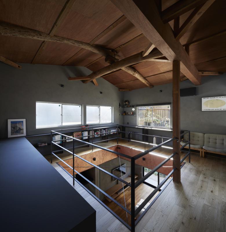 After sorting out the requirements, it was necessary to choose a method that would improve the living environment with a minimum of manipulation. Reading the current wind stagnation from the existing building, we were able to weave the flow of light and wind into the upper and lower floors by making large floor openings across each other, rather than either of the two southeast-facing rooms on the existing second floor, and by making that the center of gravity of the thermal environment. The position and dimensions of the openings were determined in consideration of creating a corridor so that the windows on the second floor can be opened and closed, and so that light can reach the living room on the north side of the first floor. The space around the opening was used to create a corridor that doubles as a library and a second living room for the family, as well as a vertical connection with the living room on the first floor.