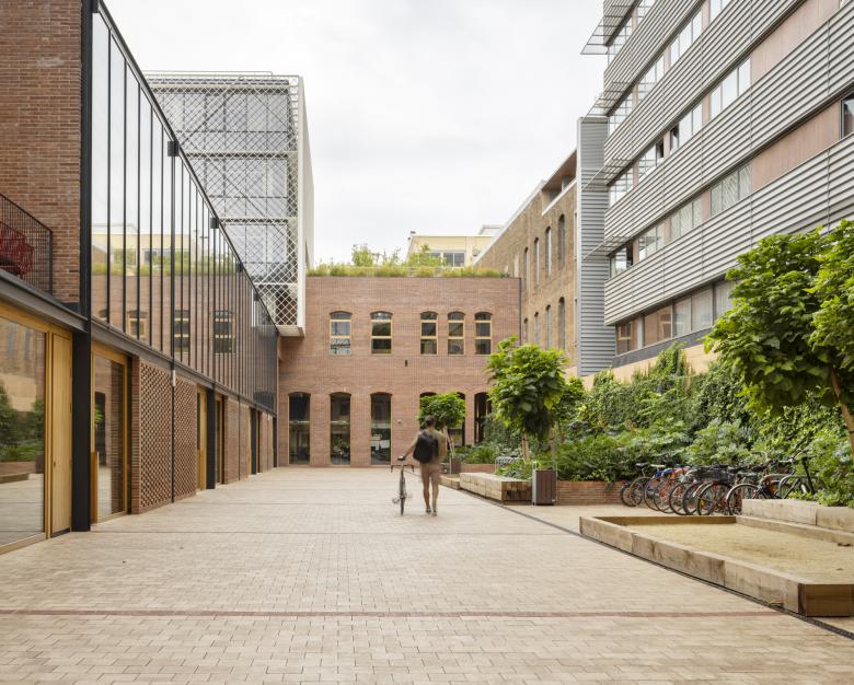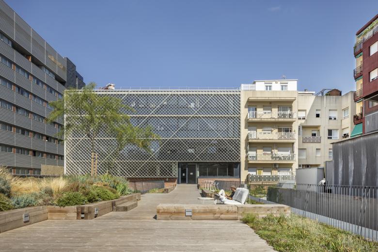 El projecte se situa en Poble Nou, en una parcel·la que formava part del conjunt de l'antiga fàbrica de filatura de jute “El Cànem”. El programa es distribueix en tres volums: dos blocs que donen a cadascuna dels carrers i un bloc en la zona central que els uneix a través d'un passatge enjardinat. Sobre un sòcol continu d'obra de fàbrica que recorre el perímetre se secunden i eleven dues caixes de vidre tamisades amb una gelosia d'alumini que evoca el teixit de fibres de jute.