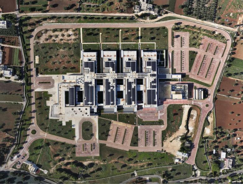 El nou hospital de Monopoli-Fasano s’ha construit dins del territori municipal de Monopoli, en una posició intermèdia entre els centres urbans de Monopoli i Fasano, per a donar servei a 264.000 usuaris de la regió.