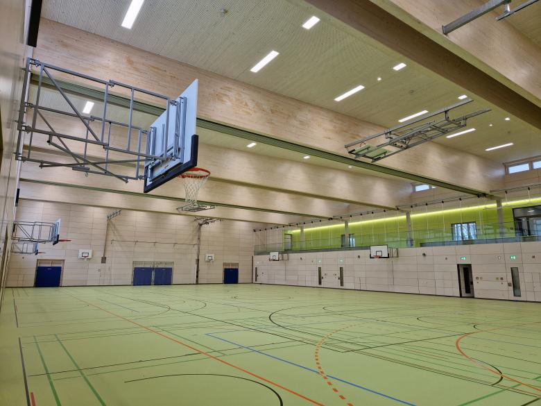 Der Neubau der Dreifachsporthalle für den Schul- und Vereinssport inkl. Hausmeisterwohnung und erforderlicher Markierung befindet sich auf dem Schulgrundstück der Grund- und Mittelschule an der Anton-Günther-Str. 3. Die bisherige, nicht mehr normgerechte Halle wurde im Vorfeld abgerissen. Der Neubau der Sporthalle ist mit einem Verbindungsbau an die Grundschule angeschlossen.