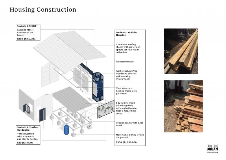 The reconstruction scheme for Precious Seed, a community in the Oworonshoki neighborhood that was heavily affected by the brutal demolitions by the state and the local king, is characterized by its simple, affordable, and modular design at all scales.