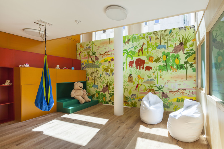 Der architektonische Schwerpunkt liegt auf familien- und kindergerechter Planung und sensibler Detailausführung, die ganz im Zeichen des „healing environment“ steht. Neben der sensiblen Ausgestaltung sorgt vor allem das Zwischenspiel aus Aktivitäts- und Ruhezonen für hohe Aufenthaltsqualität. Das Eingangsgeschoss empfängt als offener, lichtdurchfluteter Raum die BewohnerInnen und ist zugleich Begegnungsort. Gartenseitig dient ein Patio als zugeordneter Außenraum.