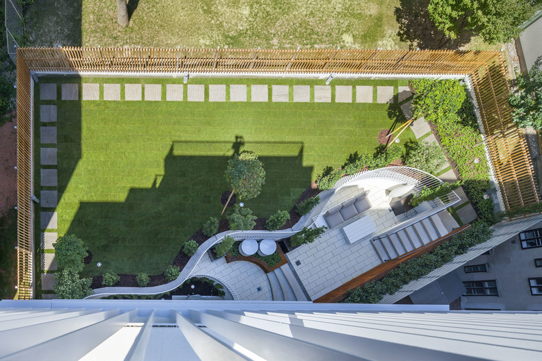 Das neue Haus ist bewusst als „Wohlfühlhaus“ konzipiert, indem viel Wert auf den optimalen Einsatz von Tageslicht und die Verwendung von Naturfarben gelegt wird. Dazu gehört auch ein Garten mit altem Baumbestand sowie Gartenterrassen auf unterschiedlichen Niveaus. Die Wege durch den Grünraum sind mit kleinen Sitzkojen ausgestattet, die zum Ruhen und Verweilen einladen. Ein Spielplatz bietet Raum für Bewegung und Interaktion.