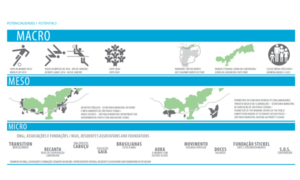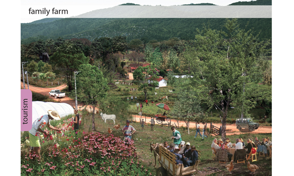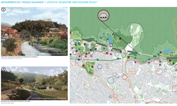 The Serra da Cantareira slopes, one of the largest urban rain forests in the world, represent today a conflict zone: Between the protected Atlantic forest and the informal settlements; between the newly constructed belt highway and the existing households that eventually have to be resettled, and between environmentalists and the infrastructural needs of a growing city. And last, but not least, between the interests of a few, the owners of houses in gated communities in close proximity to the Cantareira, and the interests of 20 million people, who are entitled to have access to large and green recreational ares. The region, which includes four different municipalities, is characterized by a huge unemployment rate amongst the population in the informal settlements and by little job offers in the area itself. People have therefor the choice between commuting long distances to work every day or remain without regular salaries. On the other hand, the beauty of the green and hilly landscape and its proximity to the magnificent Atlantic forest Serra da Cantareira is remarkable. The concept of the urban plan for the Serra da Cantareira is simple: It aims to transform the “conflict zone” into an “opportunity zone”. It suggests implementing along the Cantareira slopes a “green buffer zone”, creating jobs and income for the urban poor and offering access of a new giant and diversified leisure area inside the metropolitan region of São Paulo. Since the Atlantic forest is one of the cultural heritages of Brazil and São Paulo, this urban plan also suggests rediscovering the local identity and reconnecting with the own roots. It further considers the fact that many people in the society do not want to ignore the ecological state of our planet any longer, and they would like to maintain a sustainable lifestyle. People want to know where vegetables and fruits on their daily plates come from, in which land they were grown, and under which conditions ranch animals are raised and kept.