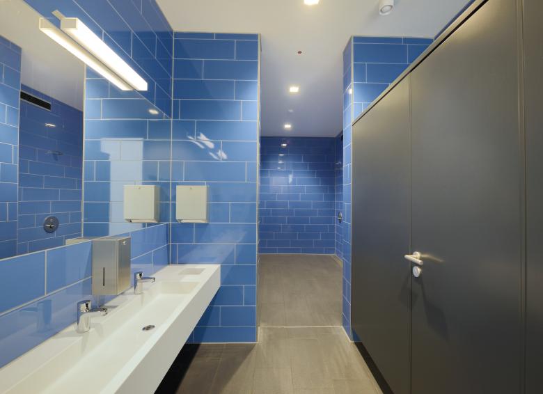 Bei einer Mehrzwecknutzung mit Mobilbühne sind auf Teleskop- und Festtribüne und Parkettbestuhlung in der Sporthalle max. 1.800 Sitzplätze möglich.