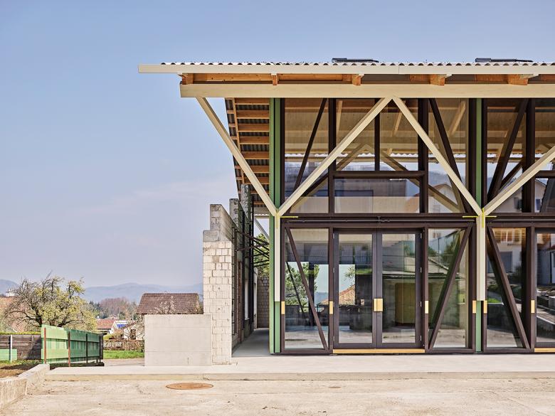 Auf dem Sockelgeschoss eines einstigen Weinlagers in Nuglar wird ein Wohnatelierhaus für 6 Parteien errichtet, welches Teile des alten Bestandes behält, um ungewöhnliche Aussen- und Innenräume entstehen zu lassen. Der leichte und elegante Holzbau spielt mit modularen Systemen, raffinierten Detaillösungen und räumlichen Möglichkeiten und erlaubt es, unter einem grossen Dach andere Formen des Zusammenlebens auszuloten.