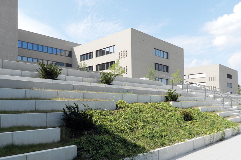 Der Neubau der Beruflichen Oberschule ist eingebettet in ca. 27.000m² Außenanlagen, die als Campus um das Schulgebäude und die Sporthalle vielfältige Funktionen