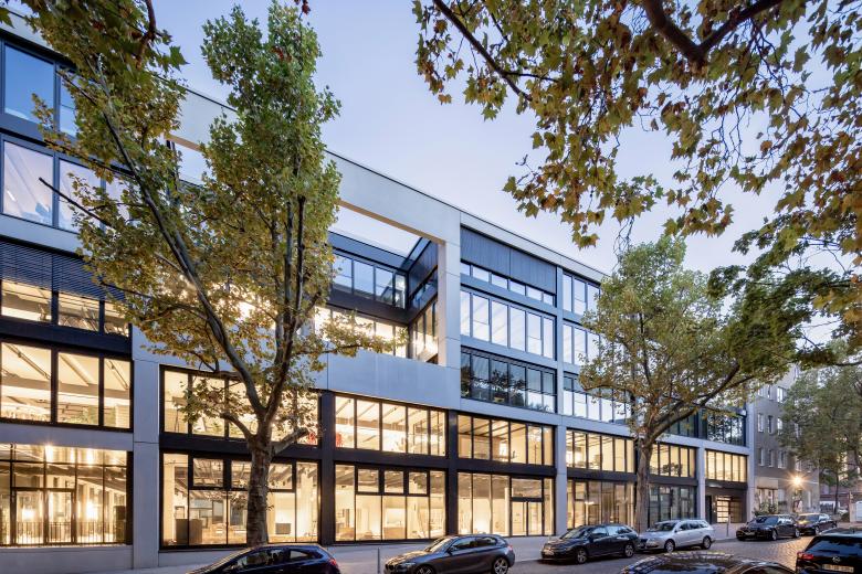 Das Brunnenviertel im Bezirk Mitte ist geprägt von historischer Backsteinarchitektur der Unternehmen Telefunken und vor allem AEG. In dieser Nachbarschaft haben wir an der Ecke Acker- und Max-Urich-Straße eine moderne Büroimmobilie realisiert, die unter dem Namen „Enter Berlin“ einen markanten Kontrapunkt setzt. So erinnert die mit großen Glasanteilen versehene Fassade formal an eine Petersburger Hängung, mit einer Kombination aus verschiedenen Rahmungen. Die zwei größten Rahmen werden von sogenannten Stadtloggien gebildet, großformatigen offenen Ausschnitten, die den Mitarbeitern schöne Außenflächen in den Baumkronen der Straße bieten.