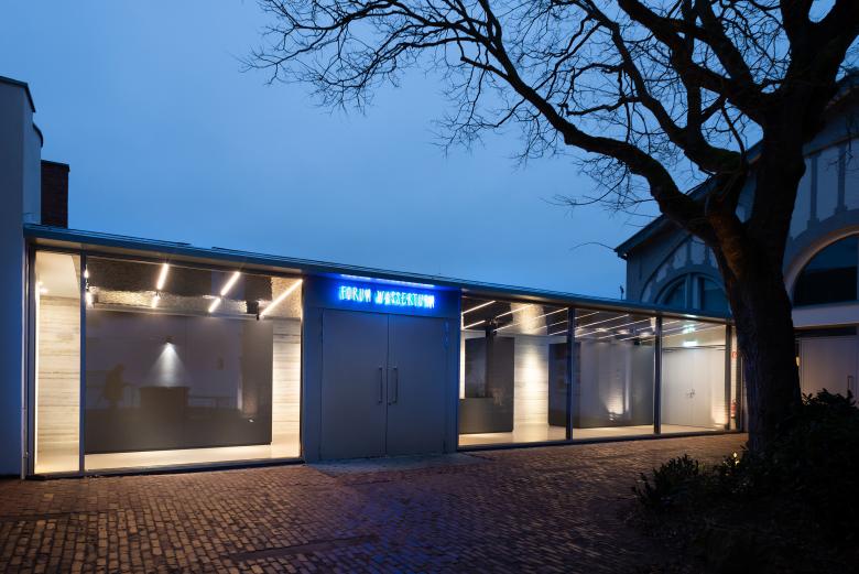 Das Forum Wasserturm in der linksrheinischen Kleinstadt Meerbusch nahe Düsseldorf hat eine sehenswerte Ergänzung erhalten. Die vom namensgebenden Wasserturm überragte Kulturinstitution, hat ihr Zuhause in einer historischen Hinterhof-Halle aus dem Jahr 1912, zu der auch ein an der Straße liegendes Café gehört. Schon lange bedurfte es eines neuen Entrees für die Halle – und so entwarfen wir ein rund 100 m² großes, hochwertig gestaltetes Foyer.