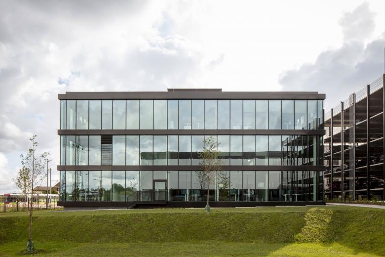 Angrenzend an das Logistikzentrum von REWE am Asselner Hellweg, im westlichen Dortmunder Stadtteil Brackel, haben wir für das Handelsunternehmen einen Ort für „New Work“ entwickelt. Basis dafür war eine ausführliche Einbeziehung der späteren Nutzer, die im Rahmen unseres RKW-eigenen „define“-Prozesses in mehreren Workshops ihre Bedarfe äußern und entwickeln konnten. Das Resultat ist ein dreigeschossiges Gebäude mit einem L-förmigen Grundriss und zeitgemäßen Arbeitsumgebungen für rund 140 Personen – und der Unterschied zwischen der Außen- und Innensicht könnte kaum größer sein.
