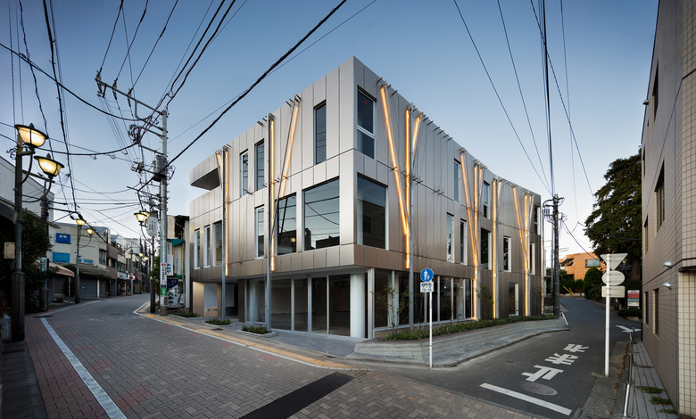 建物のファサードは、建物全体としてカラーアルミ光輝材を包み込み、歴史の