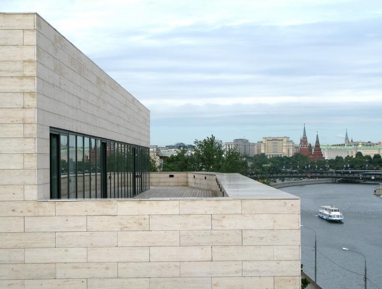 The building continues to form a new front line of the embankment, the process which had been started by building the new office of Moscow International Bank (MIB) quite a few years ago. From the urbanistic point of view the intention was to enlarge the scale of structures here in order to make the quay more accomplished and city-like character. On the other hand there always is the necessity to preserve historic dominance of Kremlin towers, Christ-the-Savior temple and other local historic marks, so it led to disconnectedness of volumes in the front façade of the new complex.