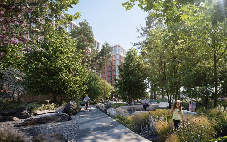 Residential complex with underground public space in Moscow, Bratyev Fonchekno street