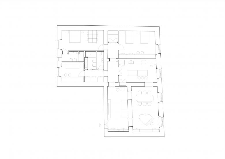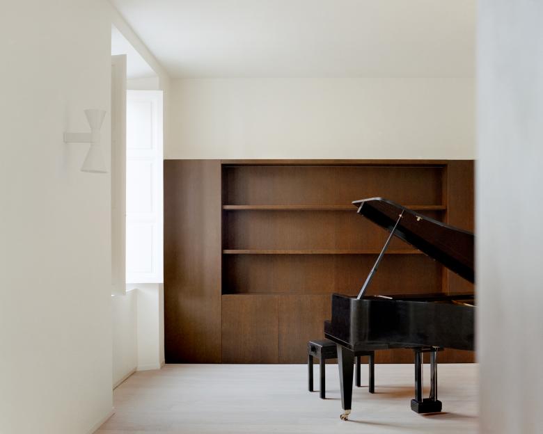 The project came from the request of the client, a pianist and his family, to transform a space with a rigid configuration, made up of a sequence of rooms and a distribution corridor, into a contemporary and dynamic environment while maintaining a “classic” character that preserves the identity of the place.