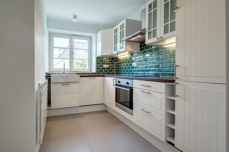 This listed property built in the 1900s - situated in the leafy suburb of Oberschleissheim, near Munich - needed a complete interior renovation. sophiegreen was approached by the client, a first-time buyer who wanted a simple but elegant interior design solution that might be suitable for the rental market as well as a family home. A new kitchen and bathroom was fitted, materials and colour scheme picked and sophiegreen oversaw all works in the renovation from first draft to project completion. The finished solution is light-filled and warm, with design ideals that showcase the property's charm and original features without over-shadowing them. Colour schemes pick up on motifs and tones in original paint (kitchen tiles echo the green of exterior doors and shutters - taking the outside inside) and 1900s wallpaper that was uncovered during the renovation, bringing this time-warp home back to the future.
