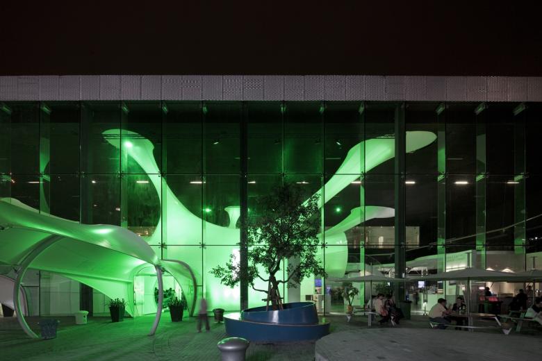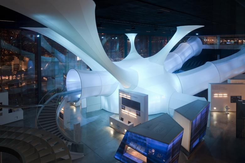 Conix Architects took their inspiration for the main structure inside the pavilion from a "Brain Cell", signifying both the artistic richness of Belgium and Europe, as well as its scientific achievements. The changing lights and colours of the Brain Cell symbolised the host city - Shanghai, "city of lights". And the multitude of visual effects in the pavilion also echoed the European Clair-Obscur movement and the Chinese shadow theatre.