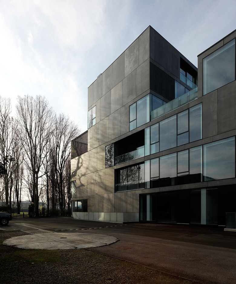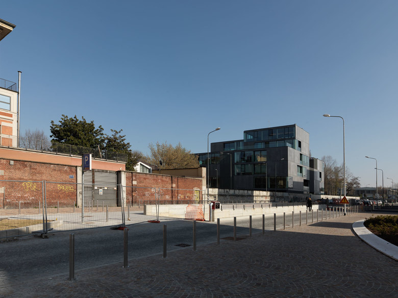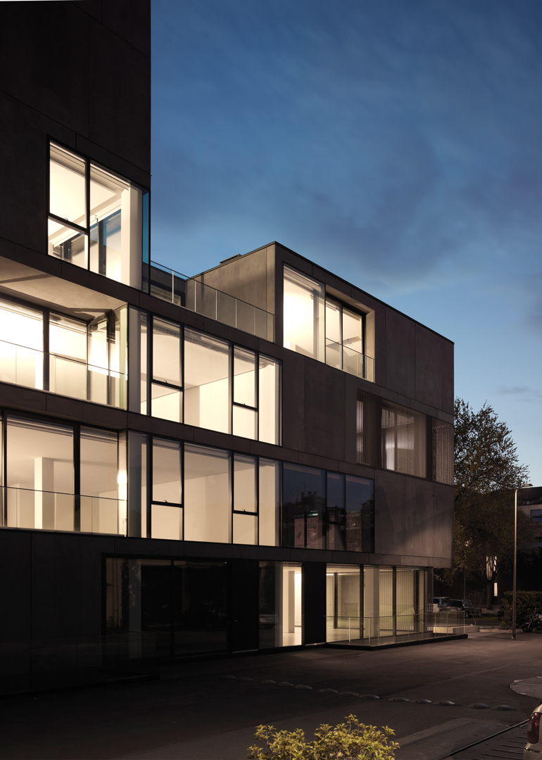 Fassadekonzeption, Vorentwurf, Entwurfs-, Ausführungsplanug für Architektur und Firmenkoordination für Dordoni Architetti. Programm: Das Baugebiet befindet sich in unmittelbarer Nähe zur ‘Zona Tortona’ – eine in den letzten Jahren städtebaulich requalifizierten Schwerindustriearealen in unmittelbarer Nähe zur Porta Genova. Durch die innenstadtnahe Lage haben sich hier viele internationale Firmen aus der Mode- und Designbranche niedergelassen. Der industrielle Charakter und Charme des Gebietes konnte weitgehend erhalten werden. Das Gebäude reagiert auf das künftige Nutzerprofil. Auf 5 Ebenen gruppieren sich 212-300 m2 große Einheiten um ein zentrales Treppenhaus. Die offenen teilweise 2 geschossigen Grundrisse verfügen zunächst nur über eine Bad und können je nach Nutzungsanforderungen (Modeatelier, Büros, Loftwohnung) customisiert werden. Die dem Industriecharakter angepasste perfekt komplanare Fassadenverkleidung verpackt elegant dias Dämmpaket. Das Gebäude ist das erste dieser Art in Klima Klasse A, mit erheblich reduzierten Energiebedarf für heizen und kühlen.