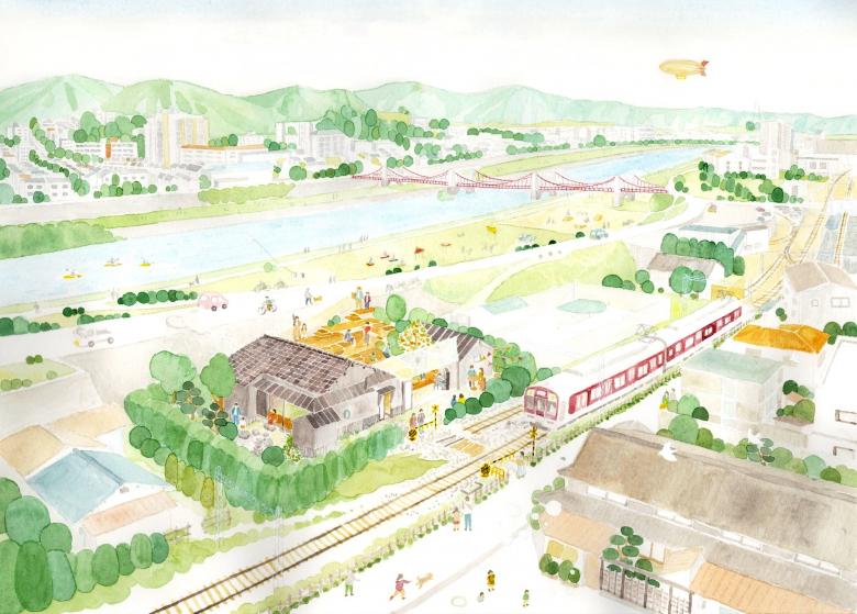 約100年前の線路建設時に作業員用施設として建てられ、その後住宅として利用されてきた建物を改修し地域に開かれた場所とするもの。敷地は線路と土手に挟まれ、アクセスは専用の小さな踏切のみという奥まった場所だったが、建物と敷地を横断する道を通すことで踏切が開かれたアプローチとなり、この場所に様々な活動が溢れ出すことを期待している。