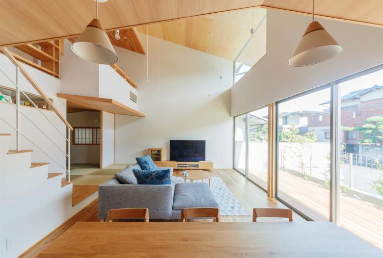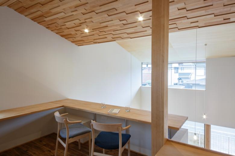 キッチンやスタディコーナー、和室や個室といったそれぞれの領域では様々な素材を使い分け、特徴づけるとともに、全体としてまとまりのある空間となるよう計画した。