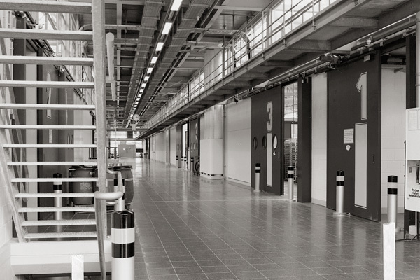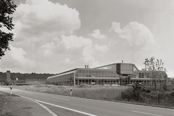 In der reizvollen Flusslandschaft des Neckartales gelegene Produktionshalle für Farben und Lacke, die mit den geschlossenen Längs- und den verglasten Stirnseiten auch für eine allfällige Erweiterung ausgelegt wurde.