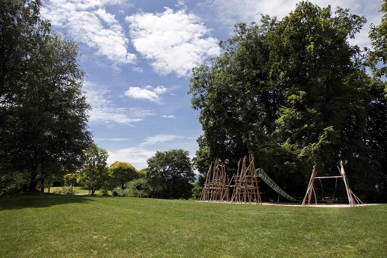 Die Sanierung erfolgt in mehreren Etappen. Die erste Etappe, welche im Sommer 2015 abgeschlossen wurde, umfasst die Sanierung der Spielwiese und -plätze. Um die Anlage offener zu machen, die einzelnen Spielbereiche zusammen zu schliessen und Sichtbeziehungen wieder herzustellen, wurden Rodungen vorgenommen und die Modellierungen entlang der Wege abgeflacht oder gänzlich entfernt. Die grosse Spielwiese wurde mit dem Aushub, der aus der Böschung abgetragen wurde, erhöht, um der Vernässung entgegen zu wirken. Die Spielskulpturen aus Eichenholz fügen sich in die Grünstrukturen des Parks ein. Sie bieten den Kindern unzählige verschiedene Möglichkeiten sie zu beklettern. Für die Kleinen steht ein grosser Sandkasten mit Matschtischen und einer Wasserzapfstelle zur Verfügung. Ein historische Wegeverbindung wurde wie die Sanierungsmassnahmen wurden sanft und der denkmalgeschützten Anlage angepasst, geplant und ausgeführt.