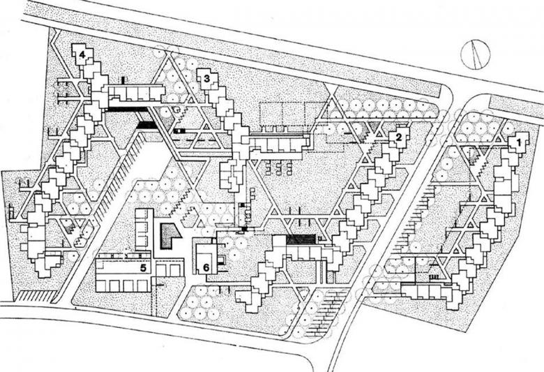 Situationsplan in einer Publikation von 1968. (Plan: WERK 1968, H. 10, S.656)