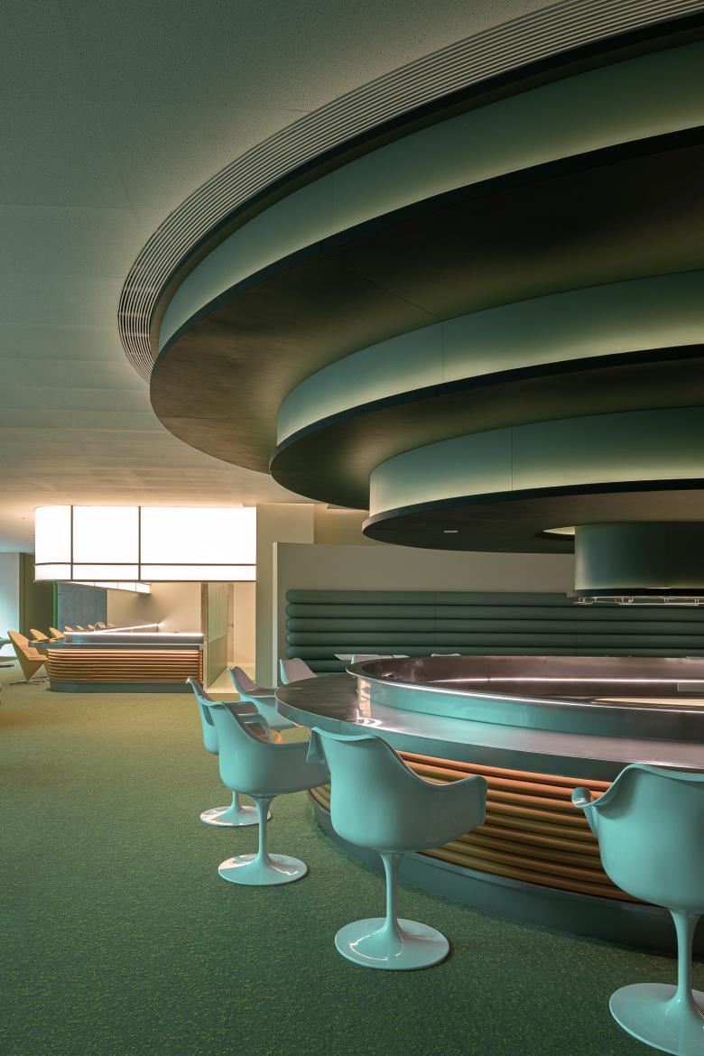 Geometric languages such as circle, curve and sphere are applied to interior structures, surfaces and furniture, echoing orbits of planets. By recreating mankind's initial imagined view of the universe, Various Associates produced a streamlined space filled with a comfortable and futuristic ambience.