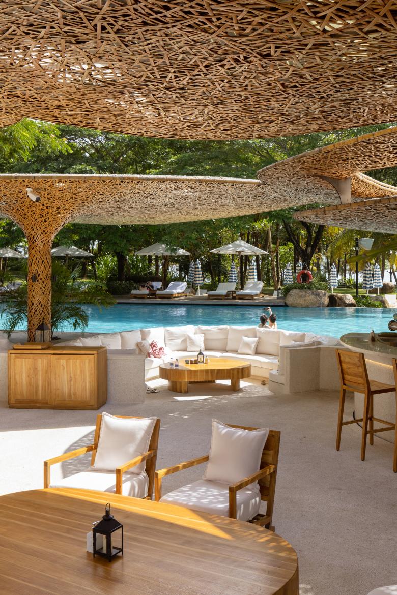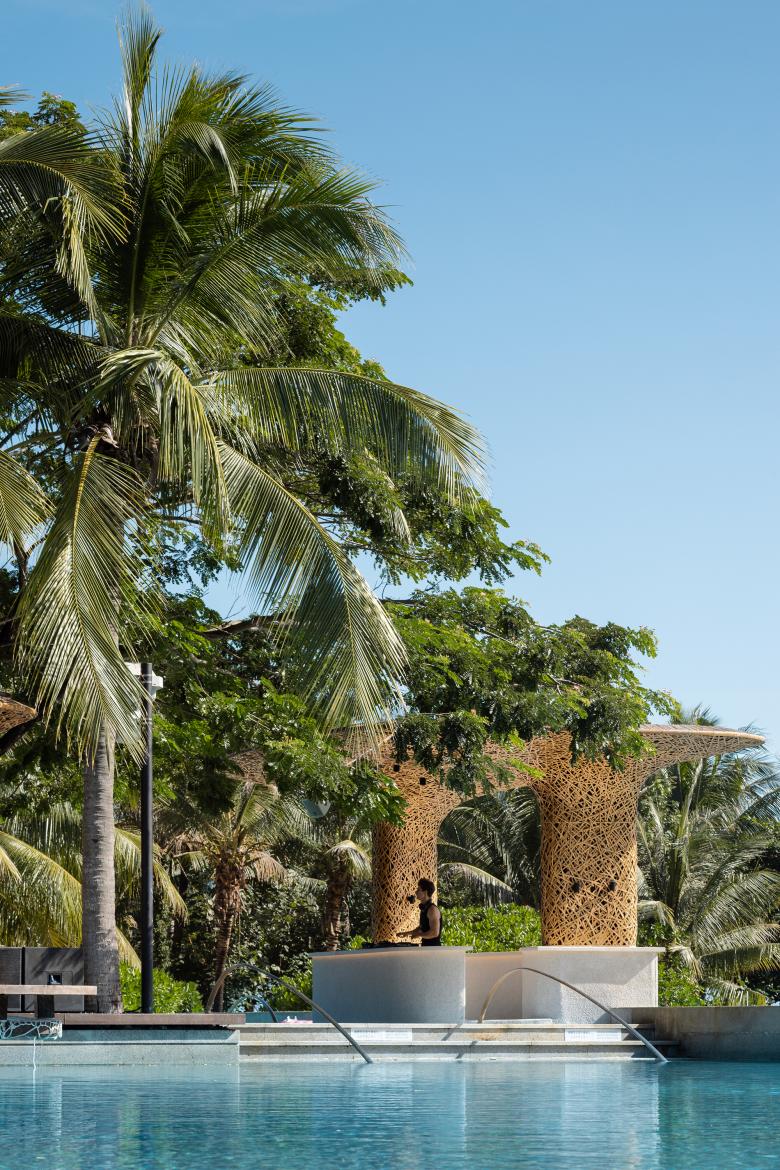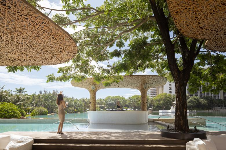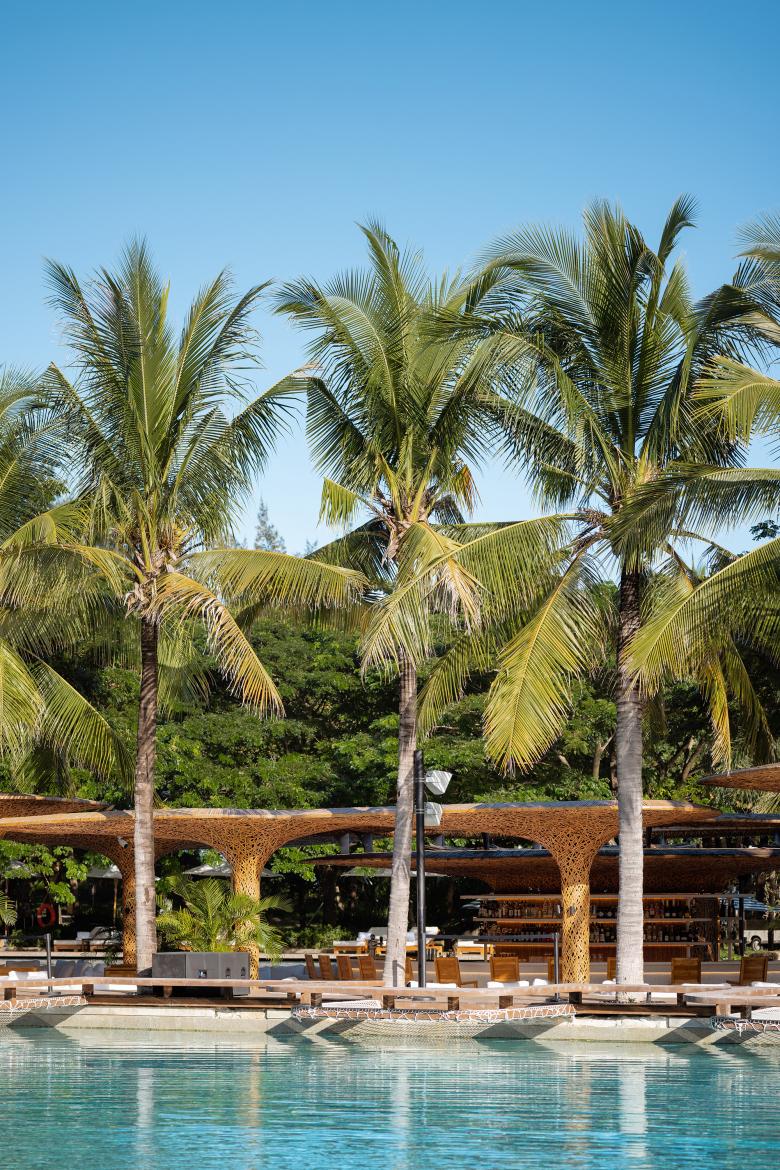The renewed beach club, based on the design concept "Under the Tree", indulges its guests in the passion of Hainan Island from day to night in a way that integrates into nature.