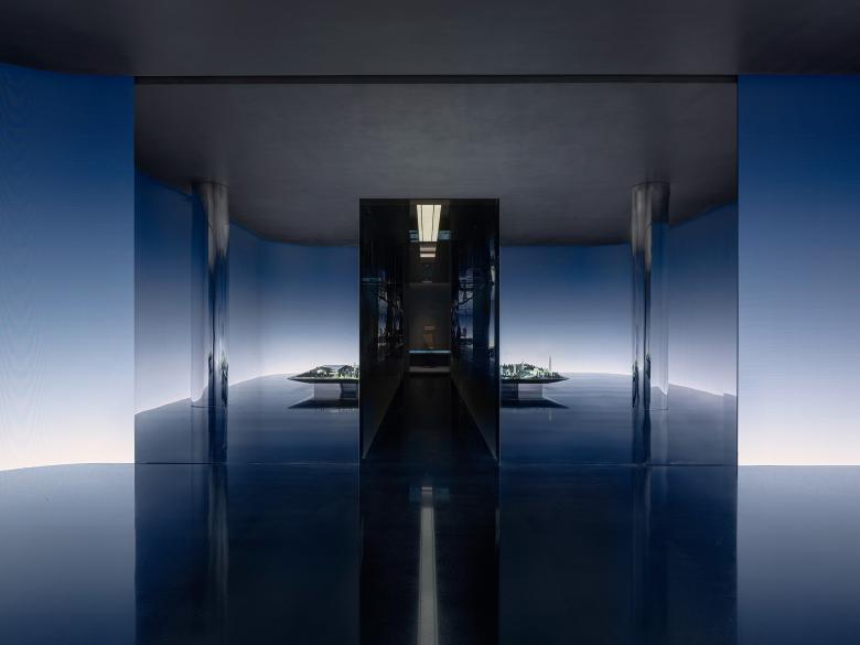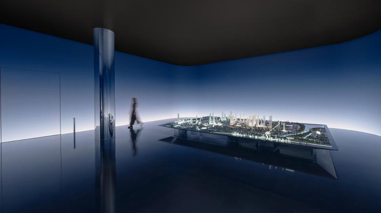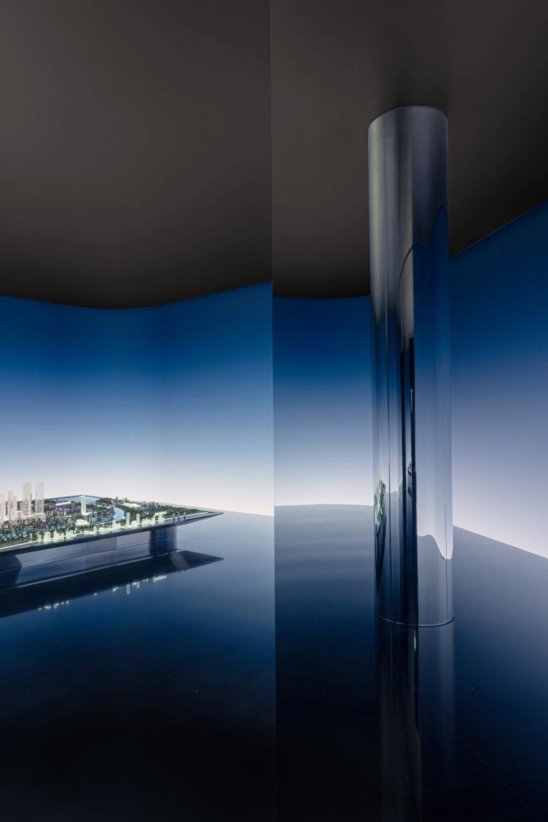 The exhibition center that displays future vision is crafted into an inclusive space. It is designed as a vessel of imagination to showcase the infinite possibilities in the future, with a dynamic backdrop injecting fresh energy into the space.