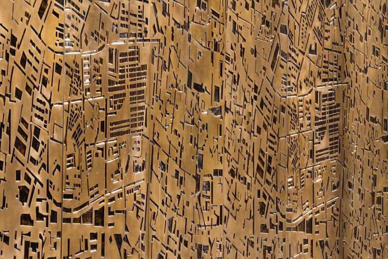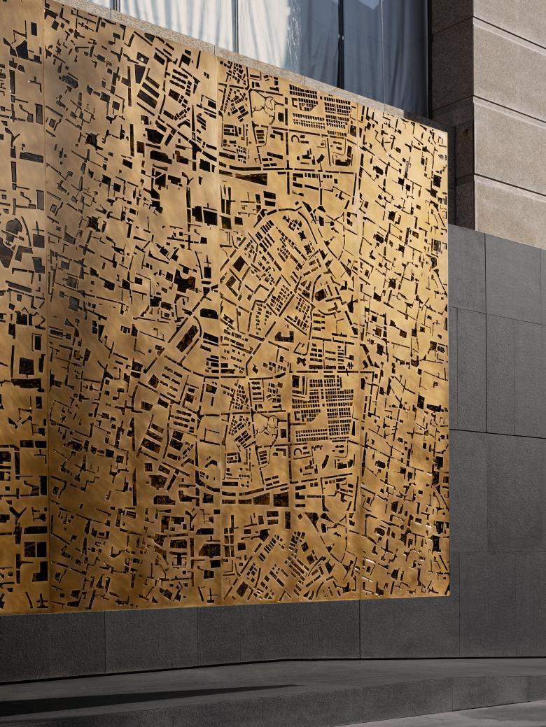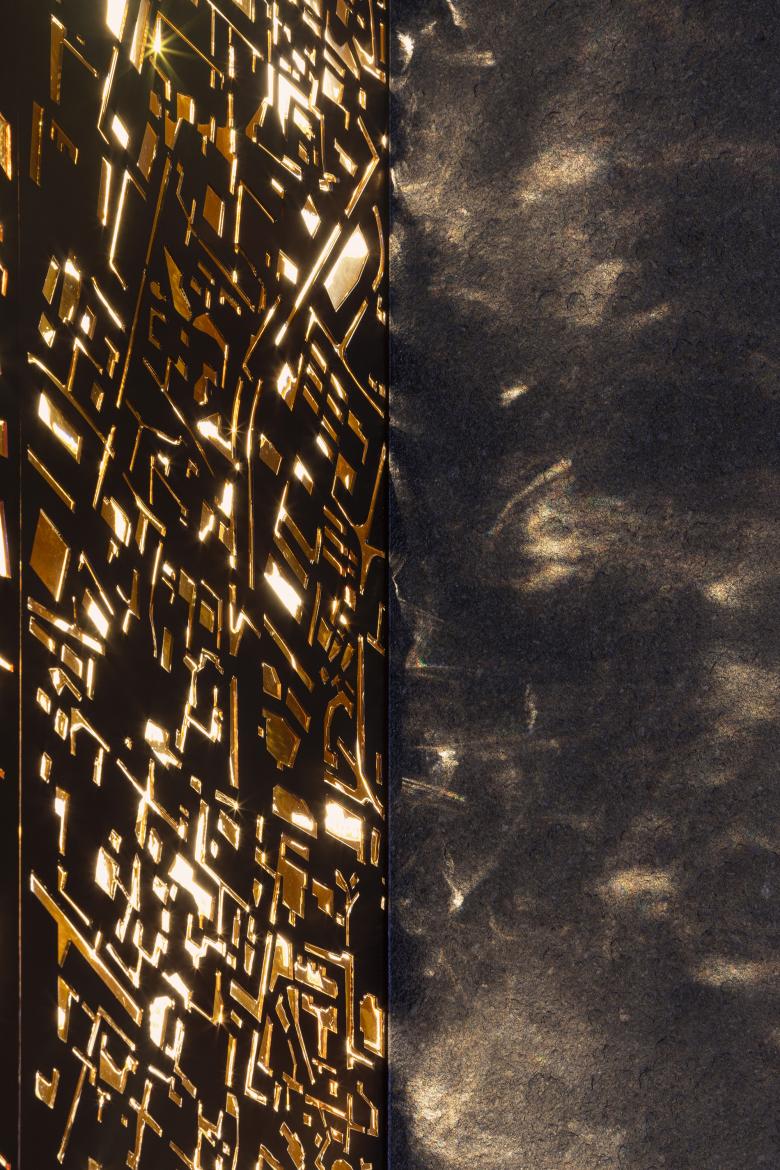 The Golden Business Center, a hallmark of "Golden Luohu", is one of Shenzhen's earliest urban landmarks completed not long after the city opened up. Constructed in 2003, this building embodies the architectural style prevalent during that period, notably recognized by citizens for its golden hue. To harmoniously integrate the new exhibition center with the existing structure, it becomes crucial to establish an appropriate design scale for the exhibition space's facade while preserving the style of the original building. To achieve this delicate balance, Various Associates ingeniously incorporated hollowed-out patterns inspired by the city fabric with a golden facade, to echo the original architectural features and establish a connection between the original structure and the new space.